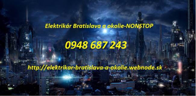 Elektrikár Bratislava .Odstraňovanie porúch elektroinštalácií .Náš elektrikár v Bratislave a okolí je Vám plne k dispozícií,ak potrebujete posunúť zásuvku vypínač . Vykonávame elektrikárske,elektroinštalačné práce .Opravy a montáž elektroinštalácií v panelových bytoch a rodinných domoch .Rôzne druhy opráv.Opravy zásuviek a vypínačov,a ich výmena montáž lustrov.Revízne správy .Kompletné elektroinštalácie bytov a rodinných domov,Bratislava a okolie .Elektrikár Bratislava-NONSTOP .Zapájanie varných dosiek.Bodové osvetlenia .Opravy a montáž bytových a domových rozvádzačov.Výmena poistiek a ističov,prúdových chráničov .Elektrické prípojky domov a bytov .