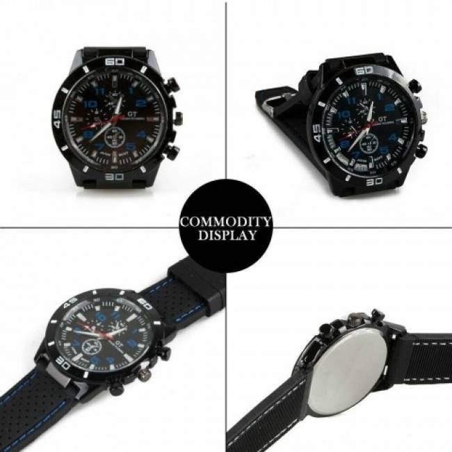 Pánske elegantné športové náramkové hodinky z nerezovej ocele Grand Touring sú určené pre elegantných mužov, ktorí zároveň preferujú športový a aktívny štýl. Quartz strojček, kvalitný silikónový zdobený remienok s príjemnou povrchovou úpravou SilkTouch dĺžky 24,5 cm s farebným vzorom na kraji remienka ladí s farebne značeným číselníkom v ciferníku priemeru 2,2 cm.