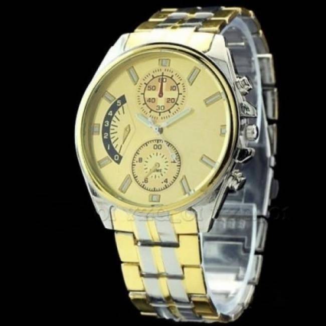 Predám nové elegantné analógové pánske náramkové hodinky s luxusným dizajnom v strieborno-zlatej kombinácii. Remienok a ciferník hodiniek sú z nerezovej ocele, priemer ciferníka cca 4,5 cm, dĺžka remienka cca 21,5 cm. Krásny a praktický darček pre muža ! Cena už od 6€