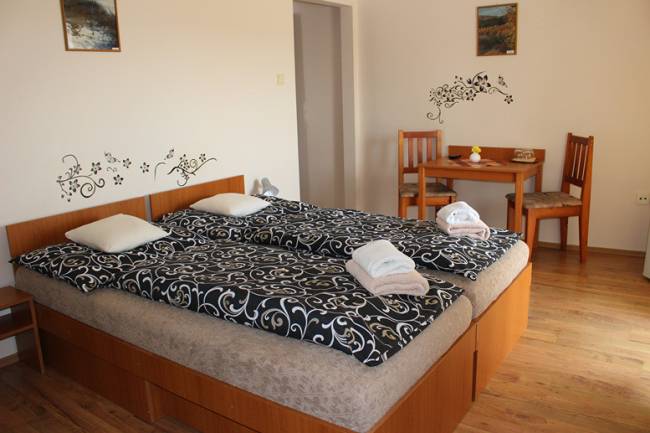 Exteriér a vybavenie: • Zateplený objekt + nové fasády • Drevené prvky v štýle horskej chaty • Upravená záhrada s možnosťou relax zóny • Parkovanie pre hostí priamo pri objekte • Plastové okná + vstupné dvere (vpredu aj zozadu) • Podlahy: PVC, linoleum, keramická dlažba • Ústredné vykurovanie • Napojenie na obecný vodovod a kanalizáciu