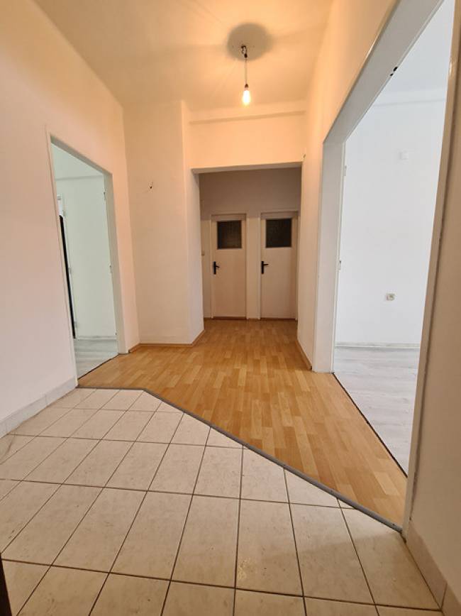 Kúpeľňa je murovaná s vaňou a murovaným samostatným WC. V celom byte sú vyššie stropy ako je štandard. Vstupná chodba a miestnosti sú priestranné, dve miestnosti sú prechodné, ale nemusia byť, pretože samostatný vstup je aj z chodby (takže stačí zamurovať prechodnú jednu časť medzi izbami). Čo sa týka stavu bytu tak boli v roku 2018 menené plastové okná v celom byte, plus žalúzie a sieťky proti hmyzu. Koncom roka 2025 sa robili nové stierky a maľovalo sa na bielo + v dvoch izbách sa menili nové laminátové podlahy, zachovali sa však aj pôvodné drevené parkety v izbách. Odstránila sa pôvodná kuchynská linka. Vonkajšie bytové dvere sa menili taktiež koncom roku 2025. Byt je inak v pôvodnom (rozvody elektriky, odpadu, vody pôvodná kúpeľňa a WC, interiérové dvere) stave, ktorý je čistý, udržiavaný a byt pôsobí veľmi dobrým svetlým dojmom. Nábytok, ktorý sa nachádza v byte môže ostať, prípadne sa byt vyprace - je to na dohode.