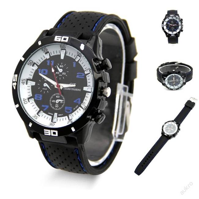 Pánske elegantné športové náramkové hodinky z nerezovej ocele Grand Touring sú určené pre elegantných mužov, ktorí zároveň preferujú športový a aktívny štýl. Quartz strojček, kvalitný silikónový zdobený remienok s príjemnou povrchovou úpravou SilkTouch dĺžky 24,5 cm s farebným vzorom na kraji remienka ladí s farebne značeným číselníkom v ciferníku priemeru 2,2 cm.