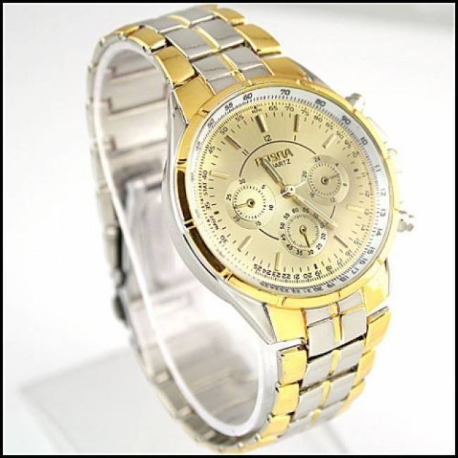 Predám nové elegantné analógové pánske náramkové hodinky s luxusným dizajnom v strieborno-zlatej kombinácii. Remienok a ciferník hodiniek sú z nerezovej ocele, priemer ciferníka cca 4,5 cm, dĺžka remienka cca 21,5 cm. Krásny a praktický darček pre muža ! Cena už od 6€
