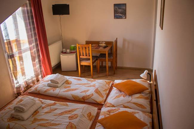 Exteriér a vybavenie: • Zateplený objekt + nové fasády • Drevené prvky v štýle horskej chaty • Upravená záhrada s možnosťou relax zóny • Parkovanie pre hostí priamo pri objekte • Plastové okná + vstupné dvere (vpredu aj zozadu) • Podlahy: PVC, linoleum, keramická dlažba • Ústredné vykurovanie • Napojenie na obecný vodovod a kanalizáciu